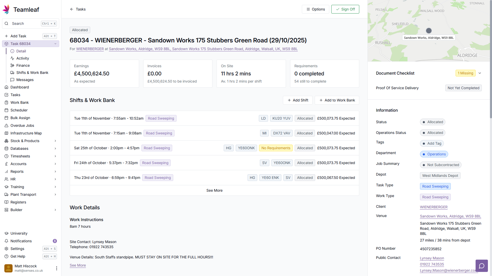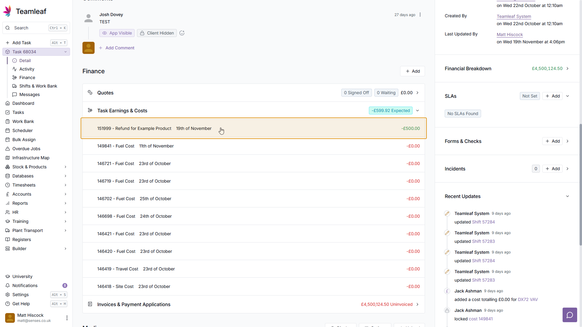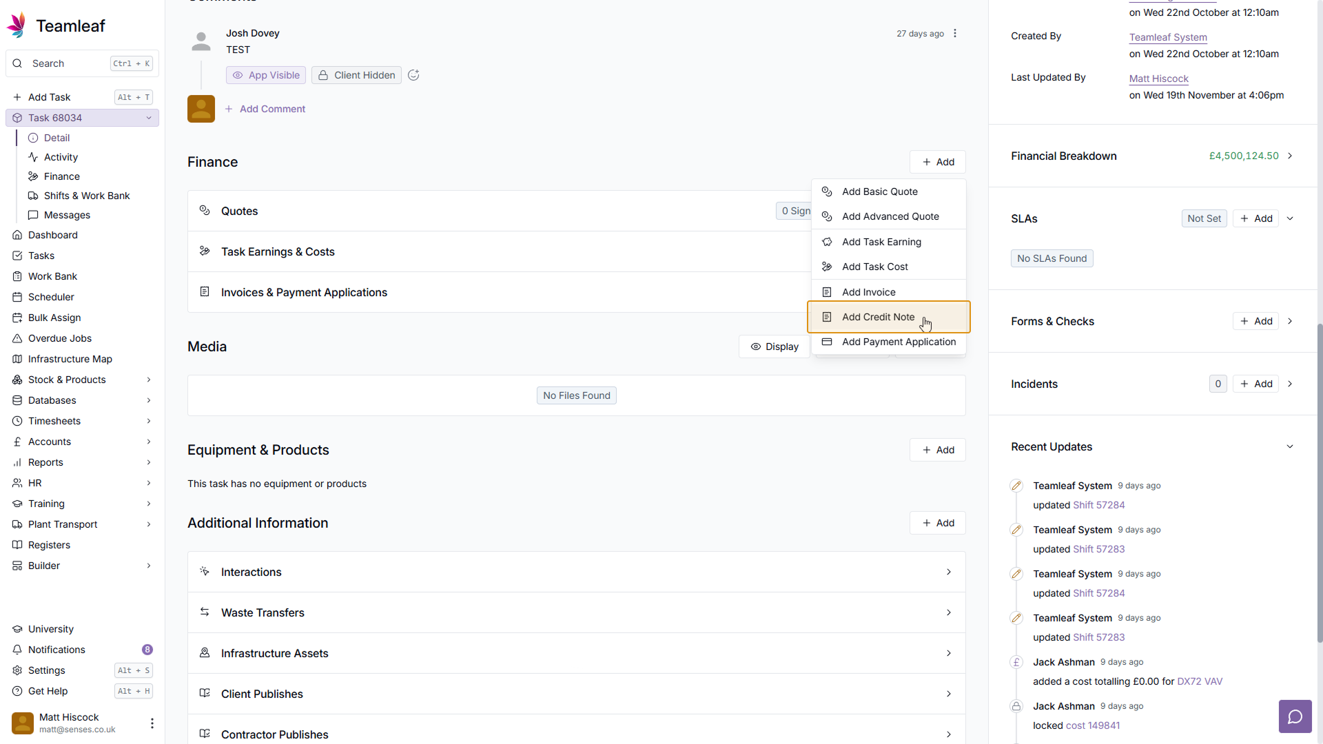 To start, go to the task that you'd like to add a credit note to, via the 'Tasks' page on the left sidebar.