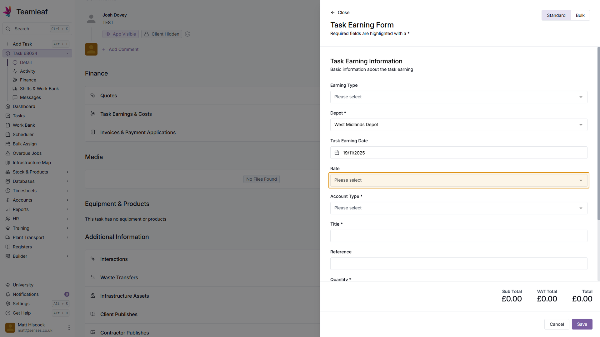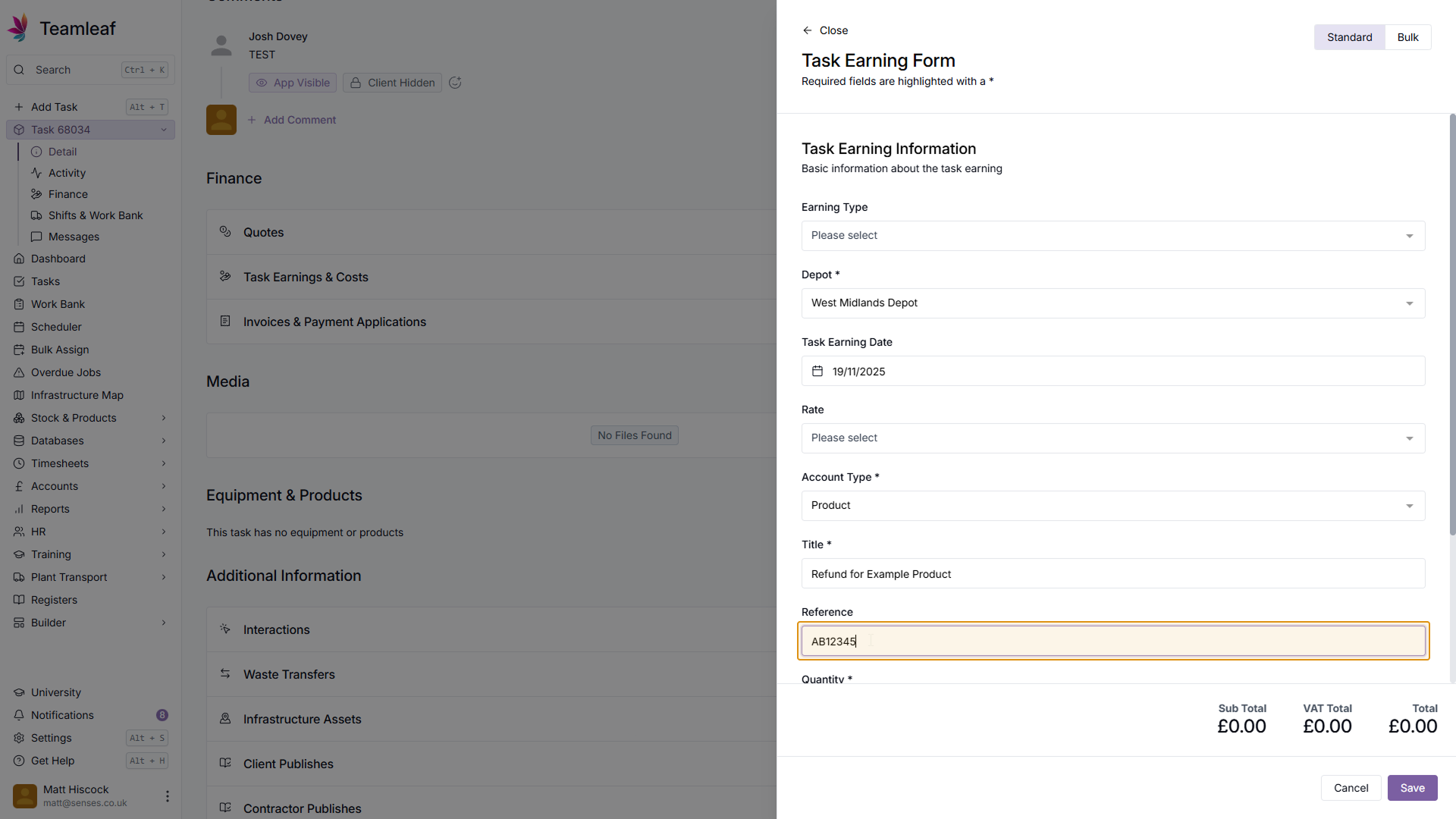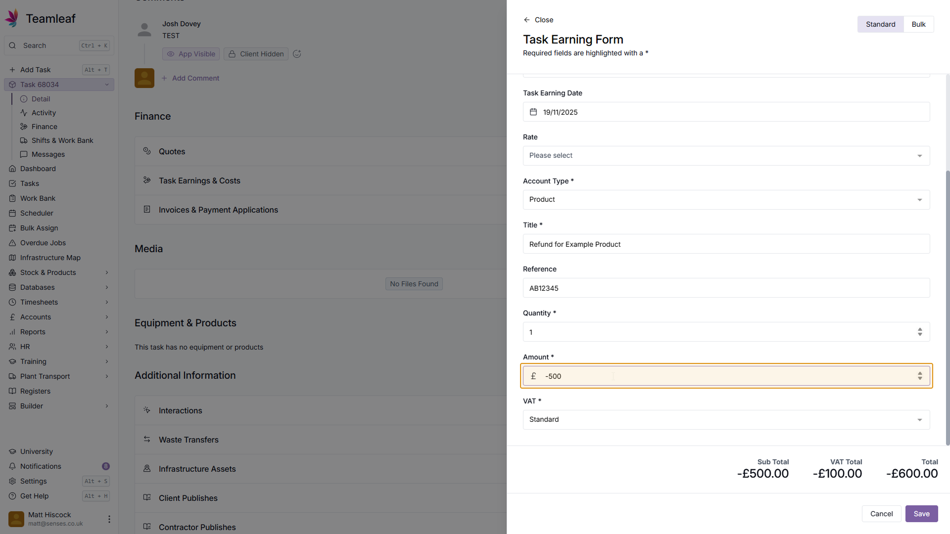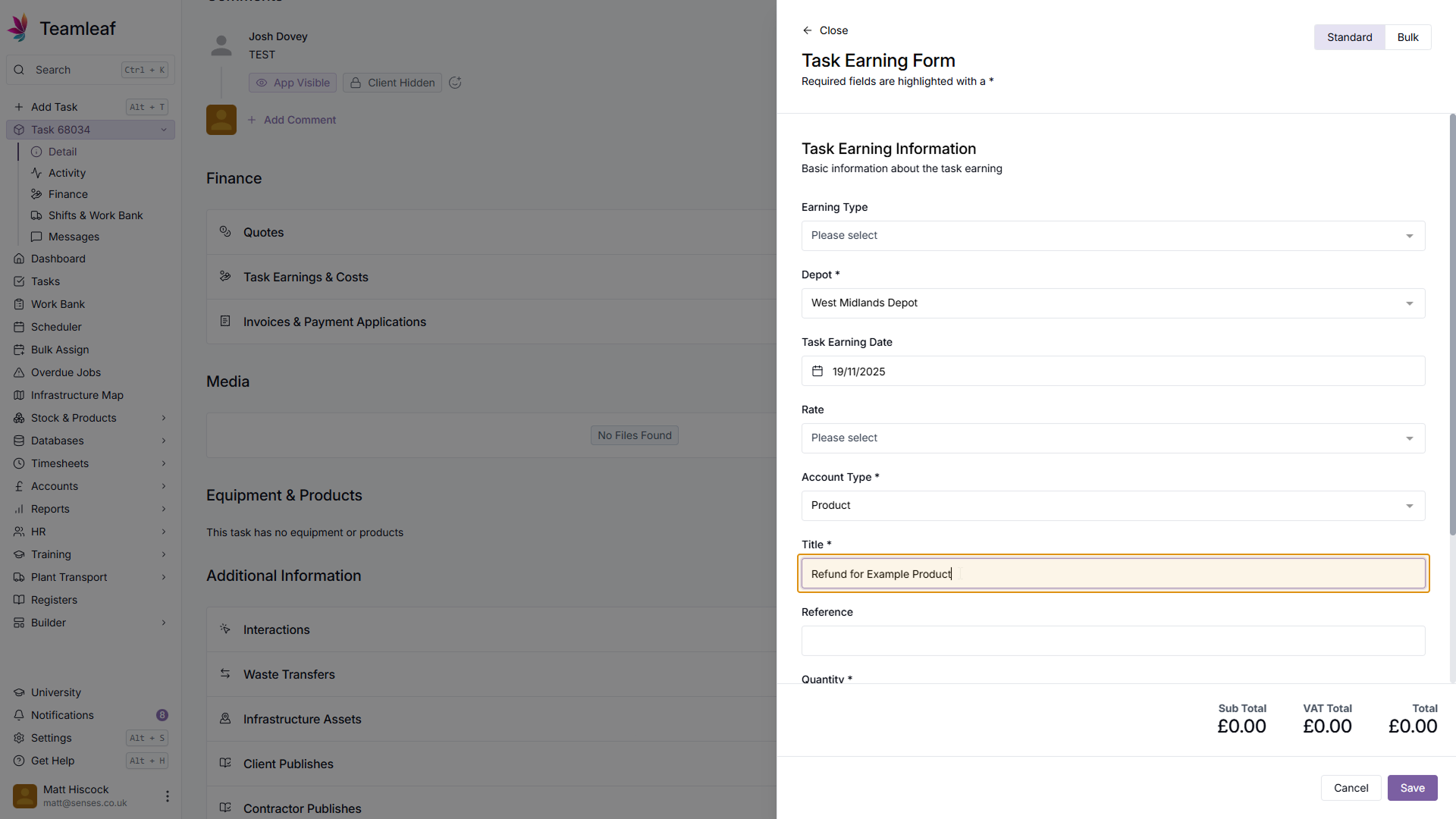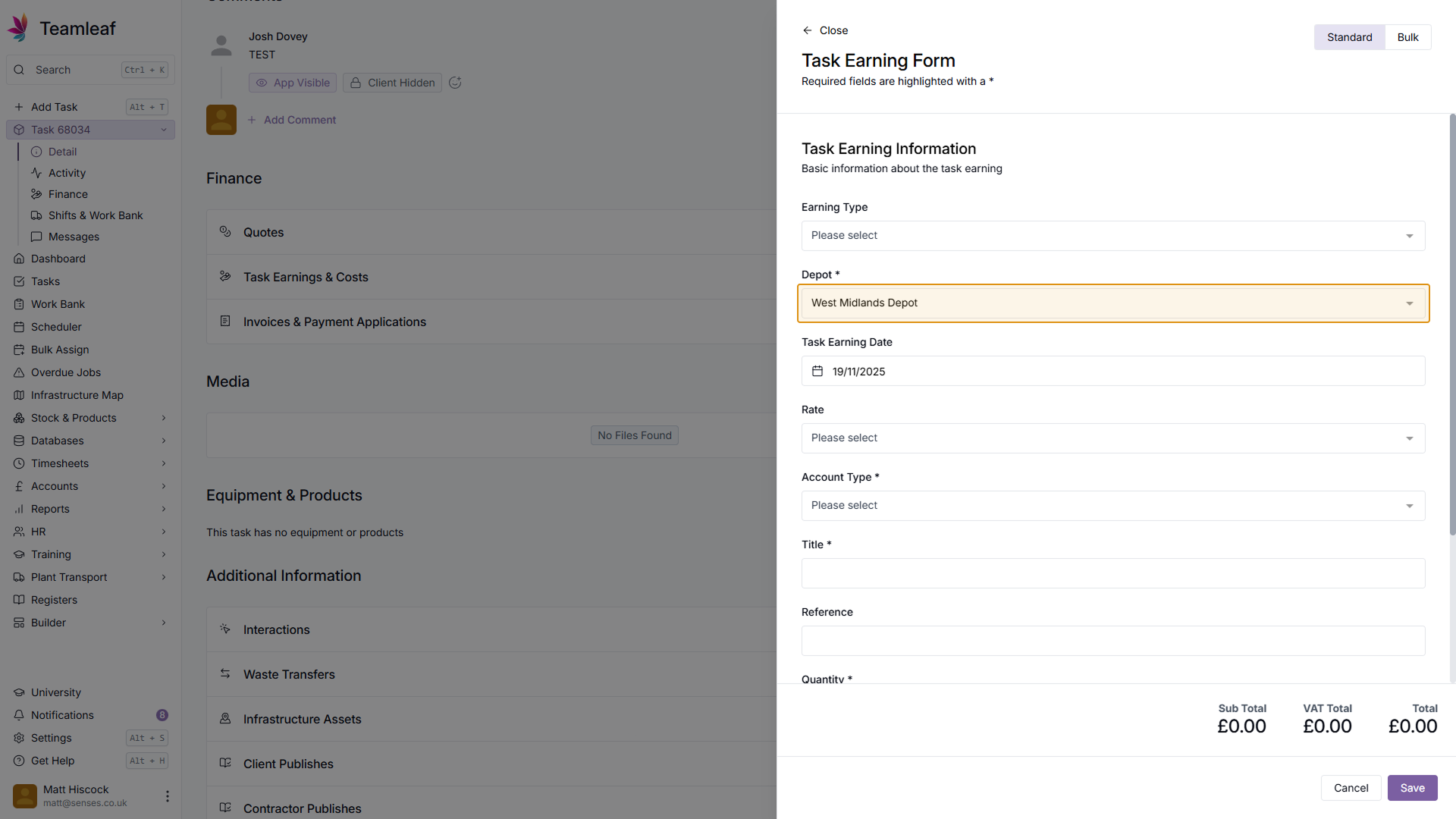 Once you're happy with the Task Earning, click 'Save' in the bottom right. The Task Earning will now be added to the 'Task Earnings & Costs' section of the Task