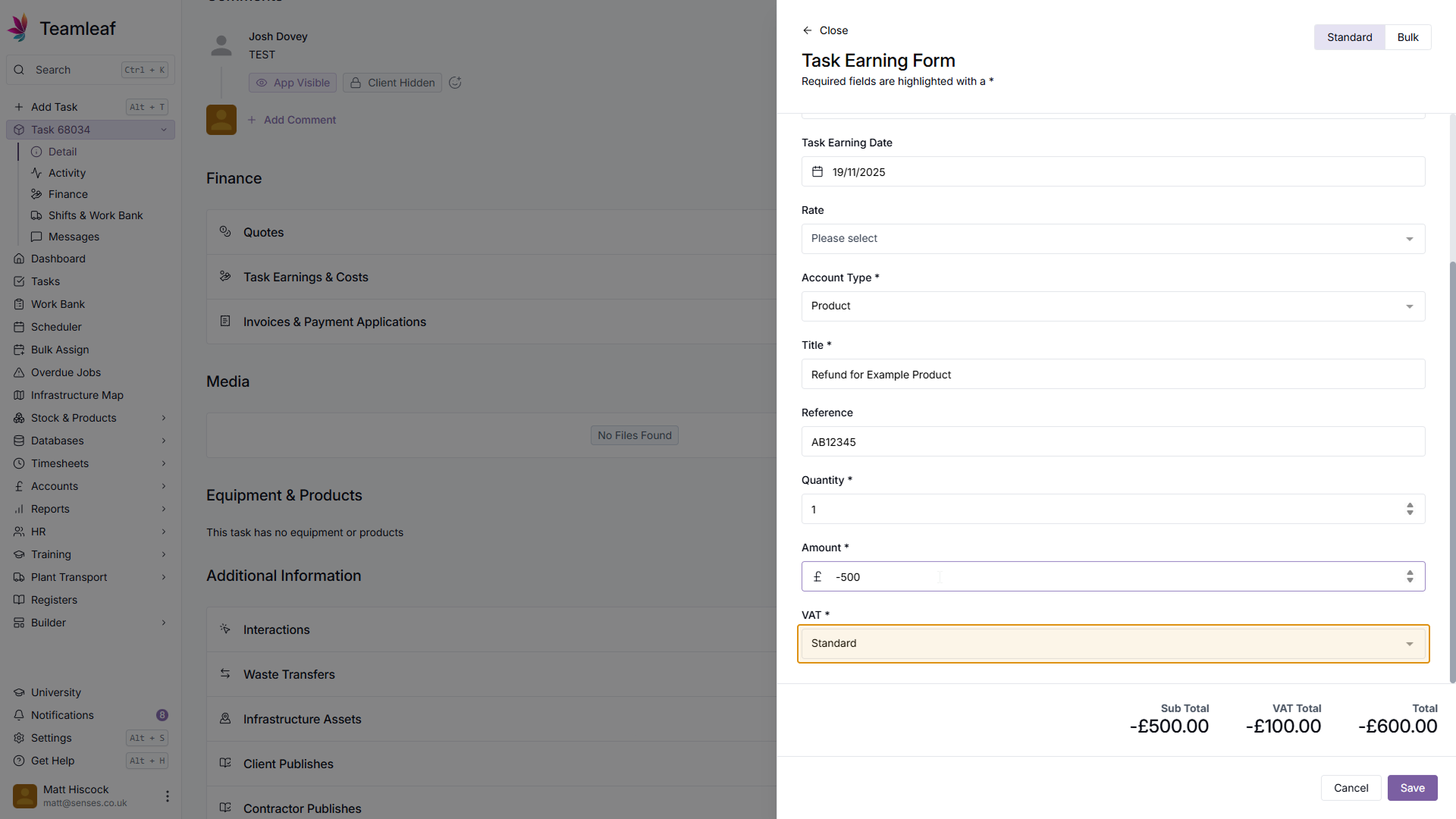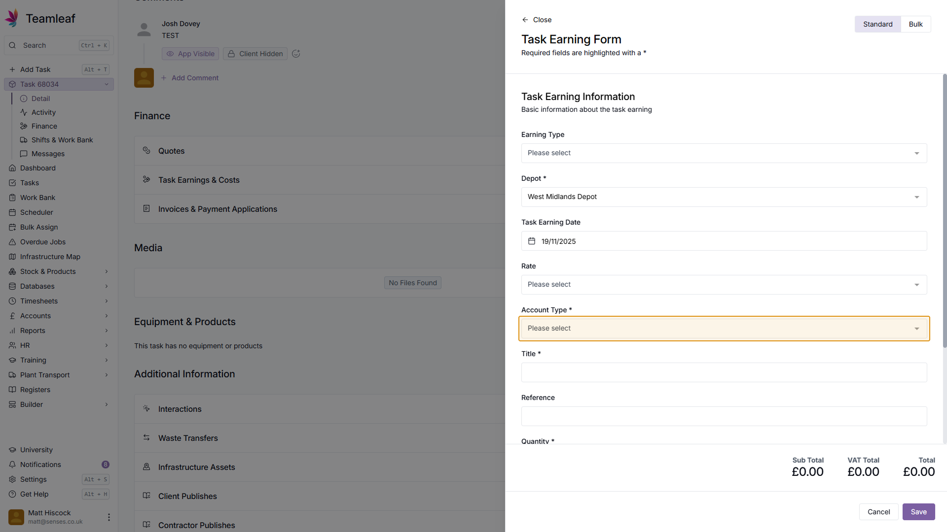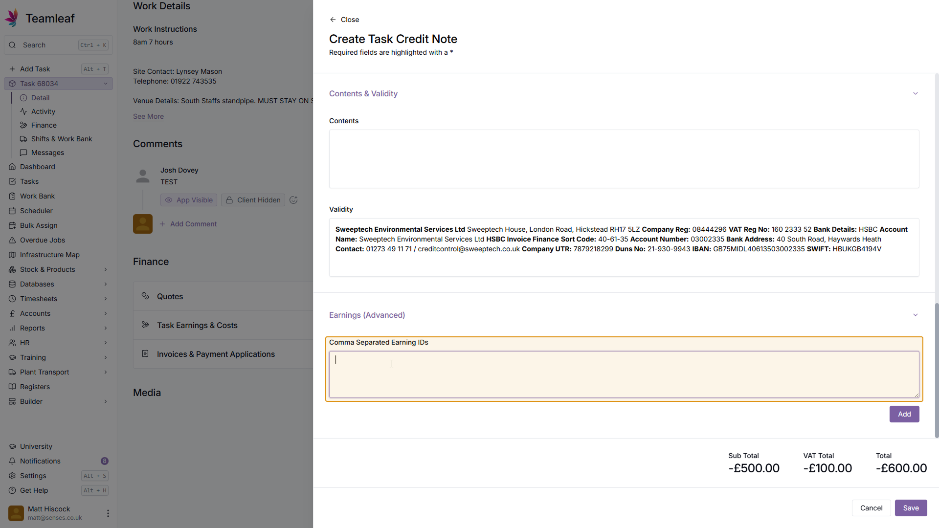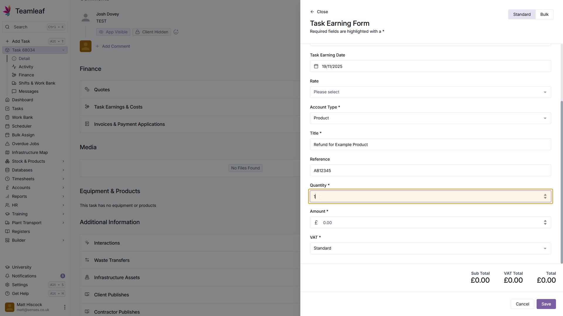 Once you're happy with the Task Earning, click 'Save' in the bottom right. The Task Earning will now be added to the 'Task Earnings & Costs' section of the Task