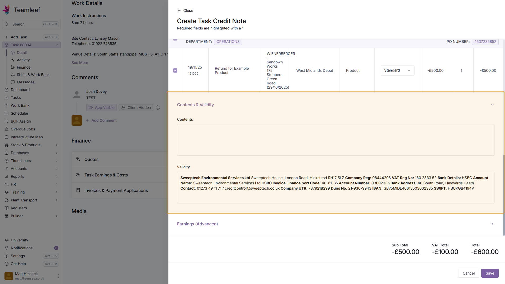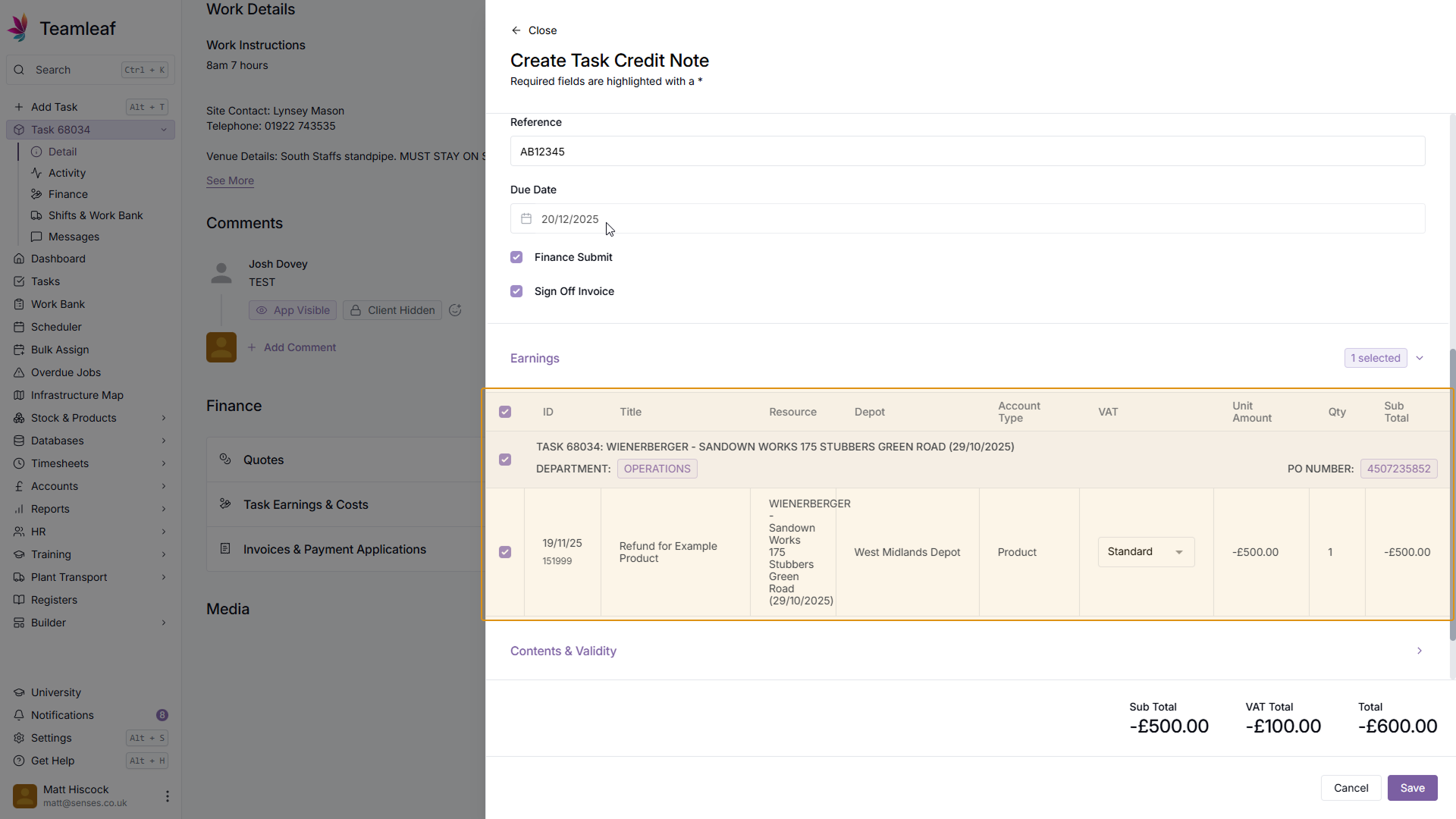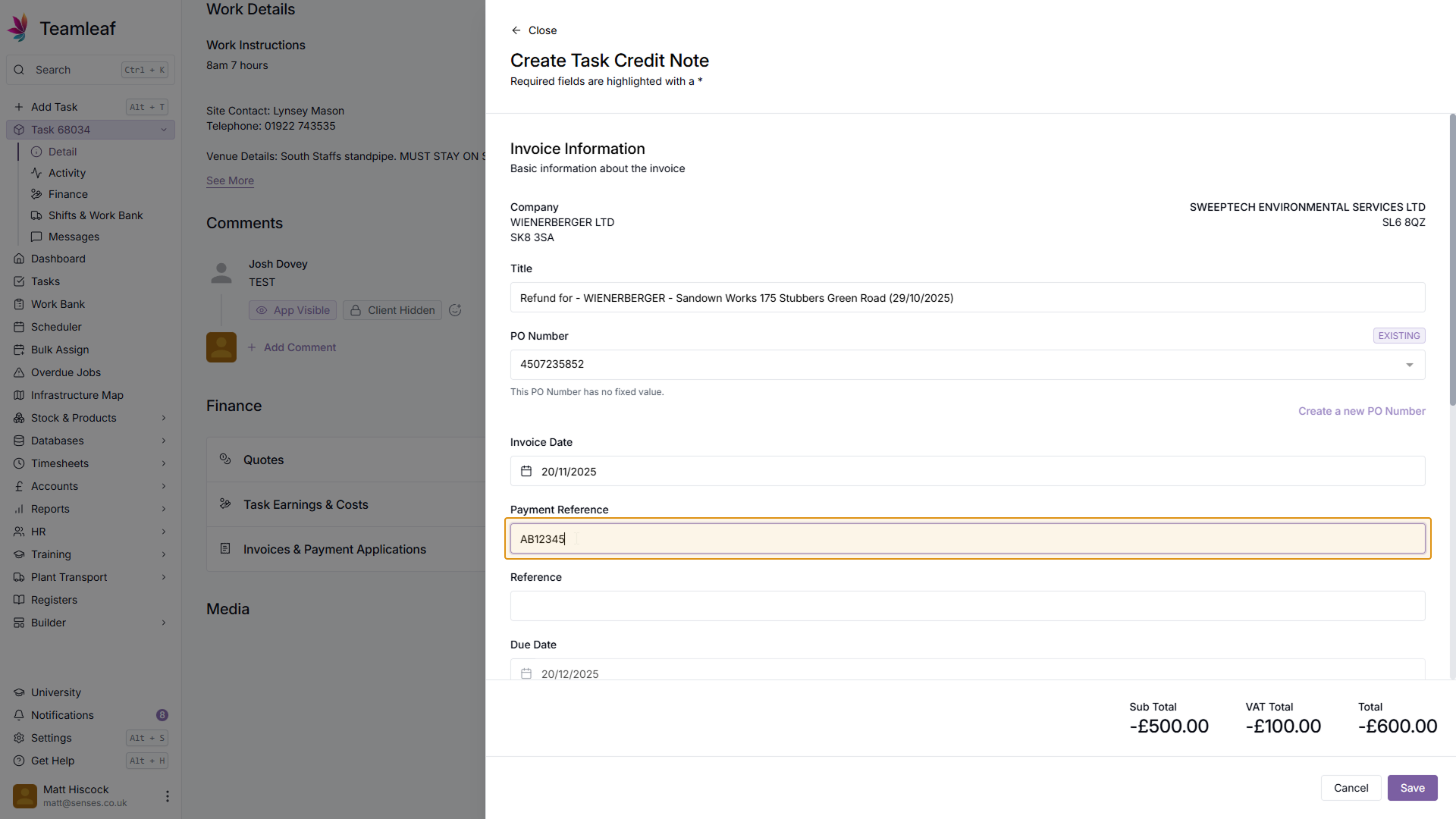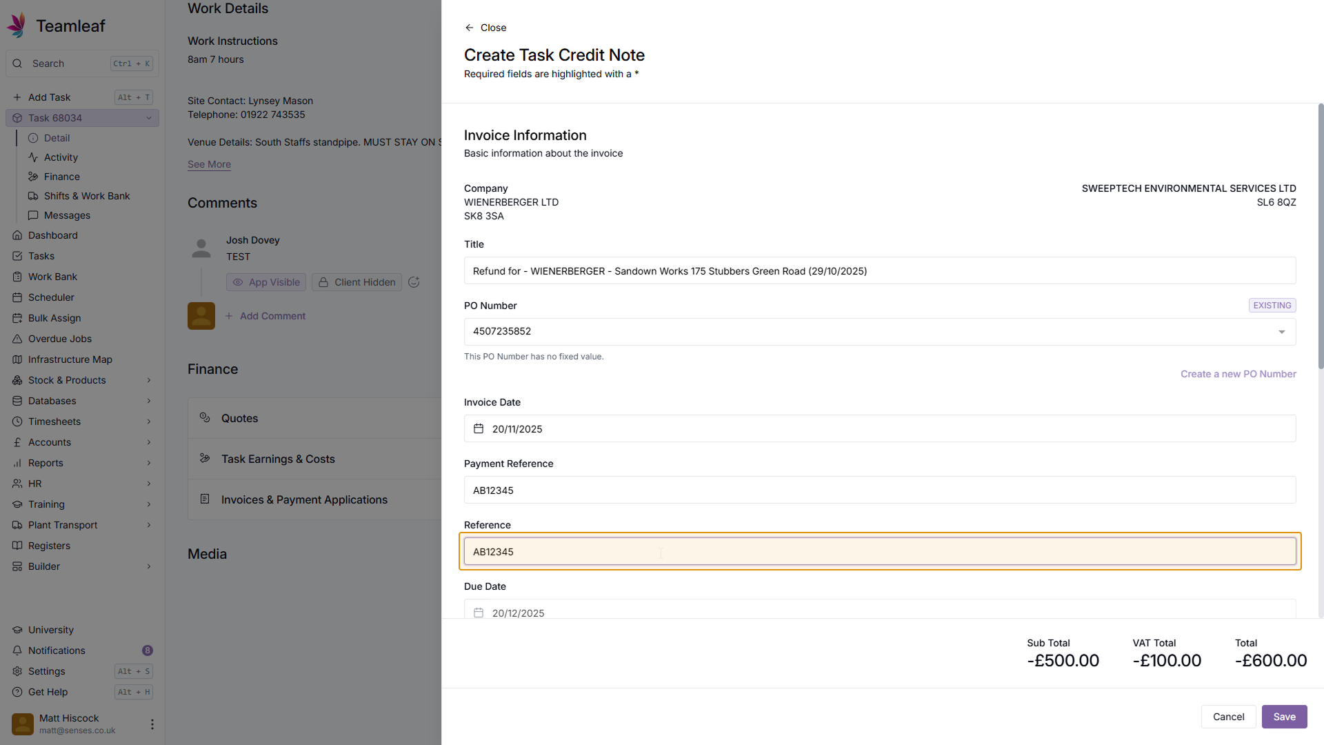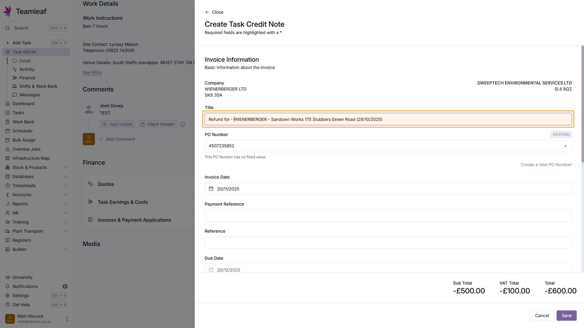 Learn how to create an invoice in Teamleaf, made simple using information you've already added to the Task