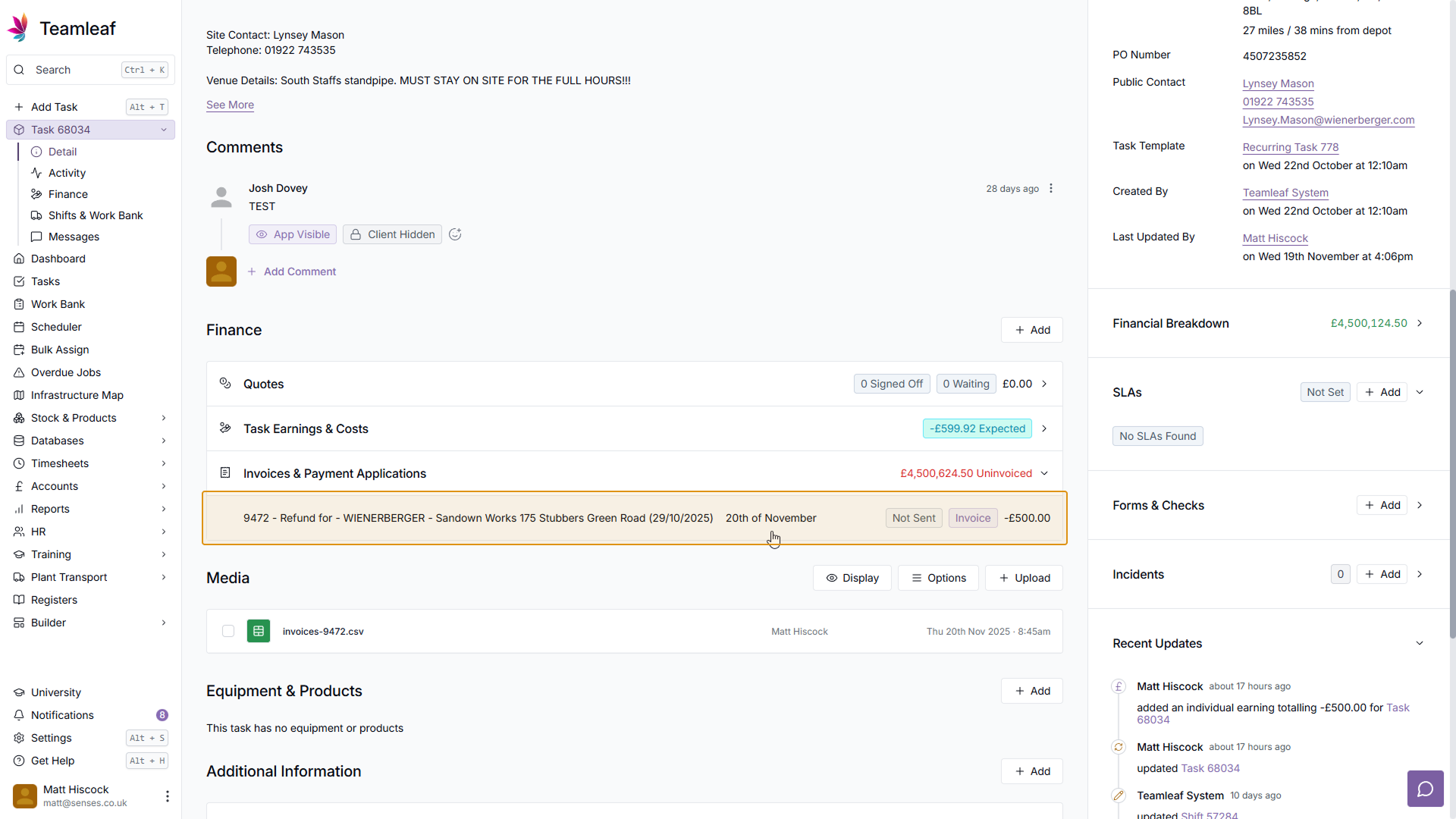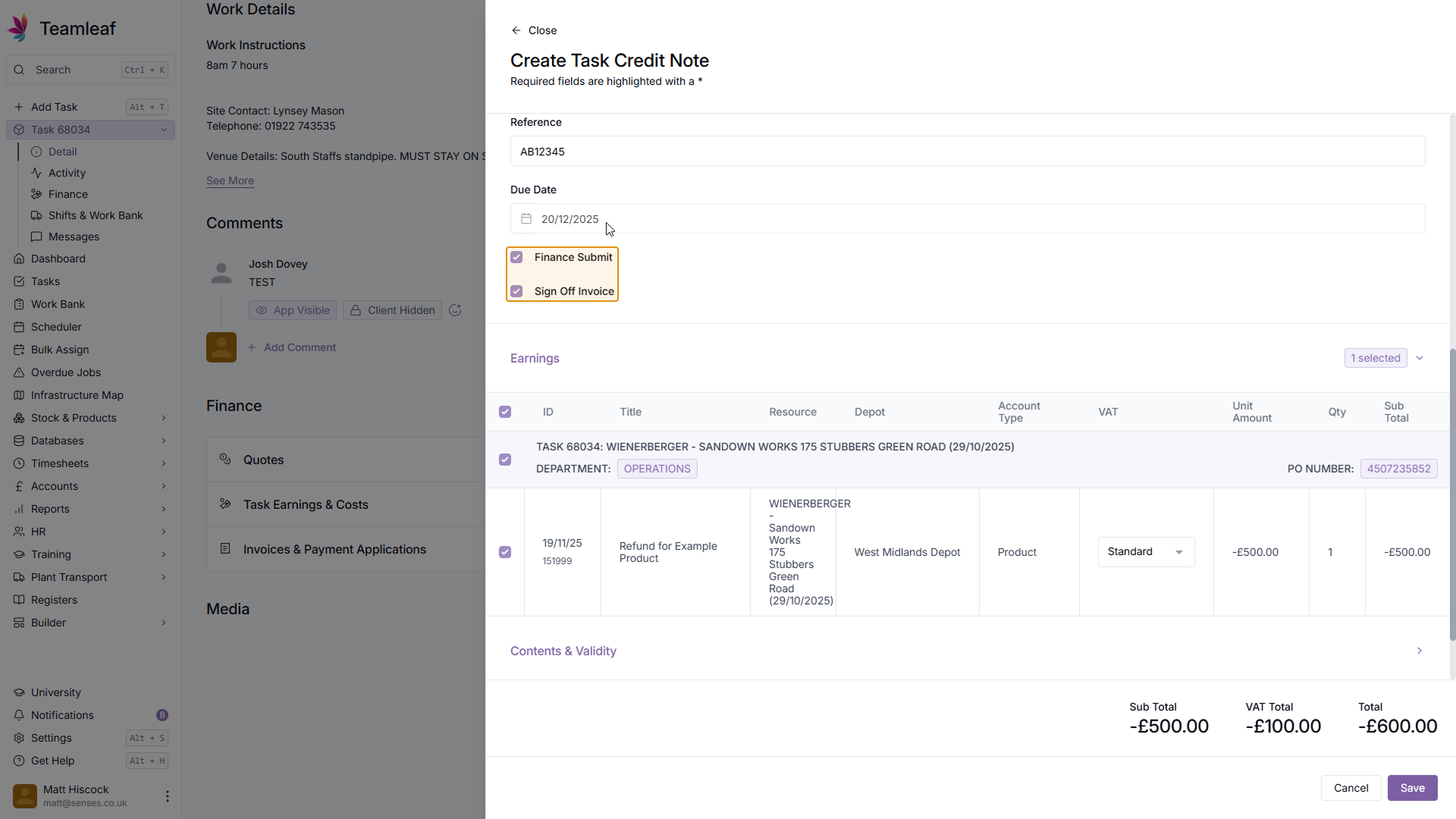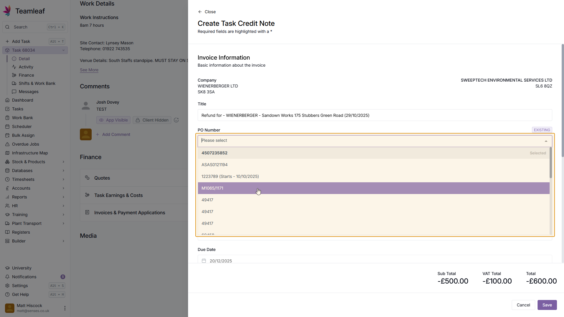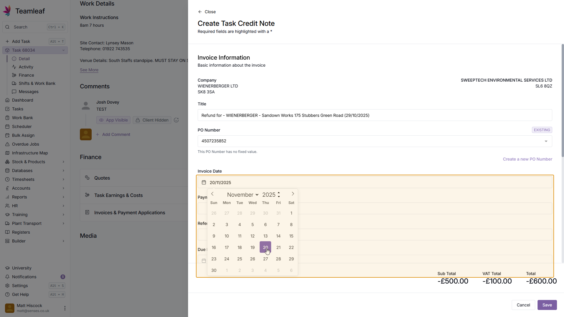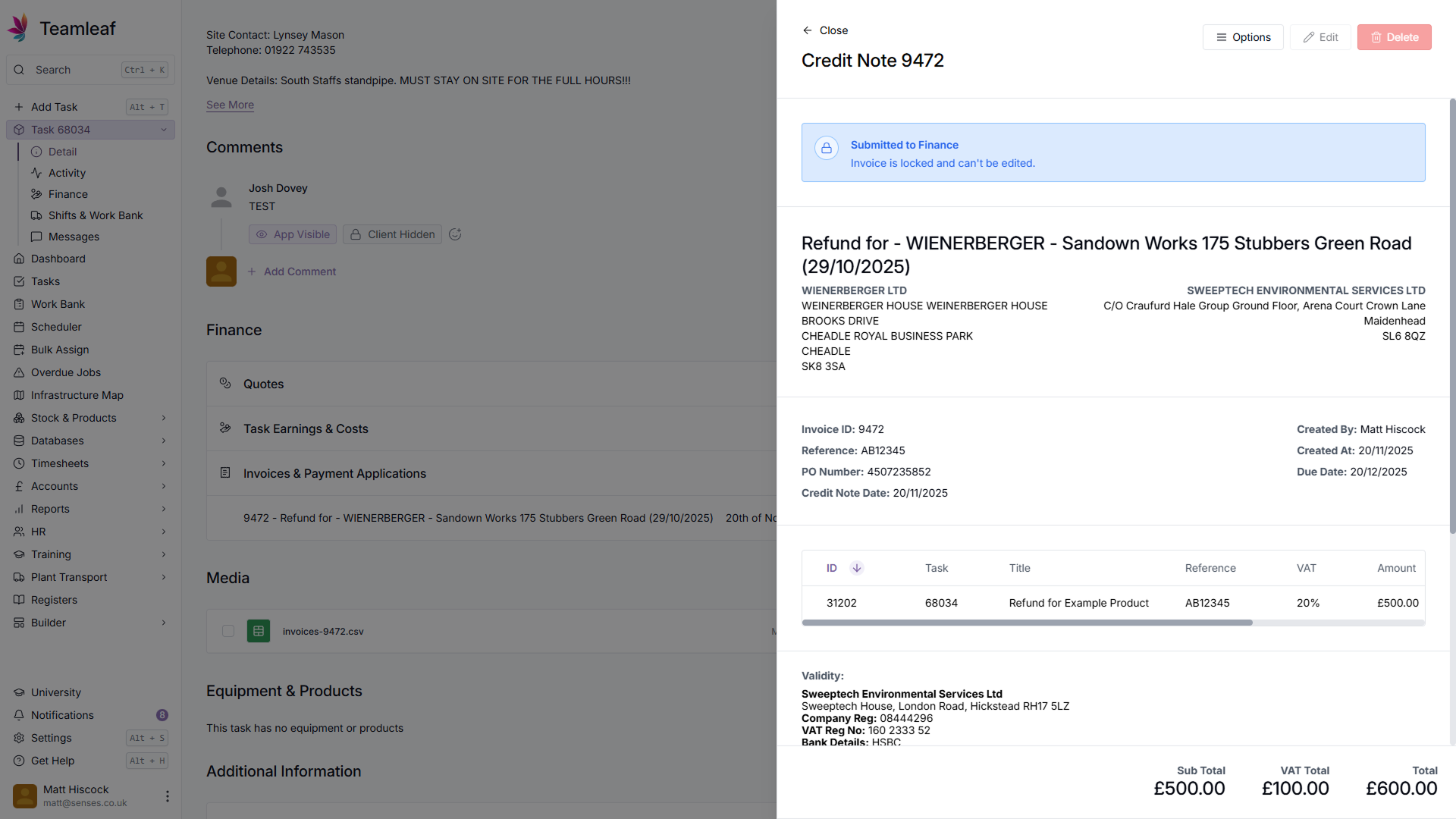 Learn how to create an invoice in Teamleaf, made simple using information you've already added to the Task