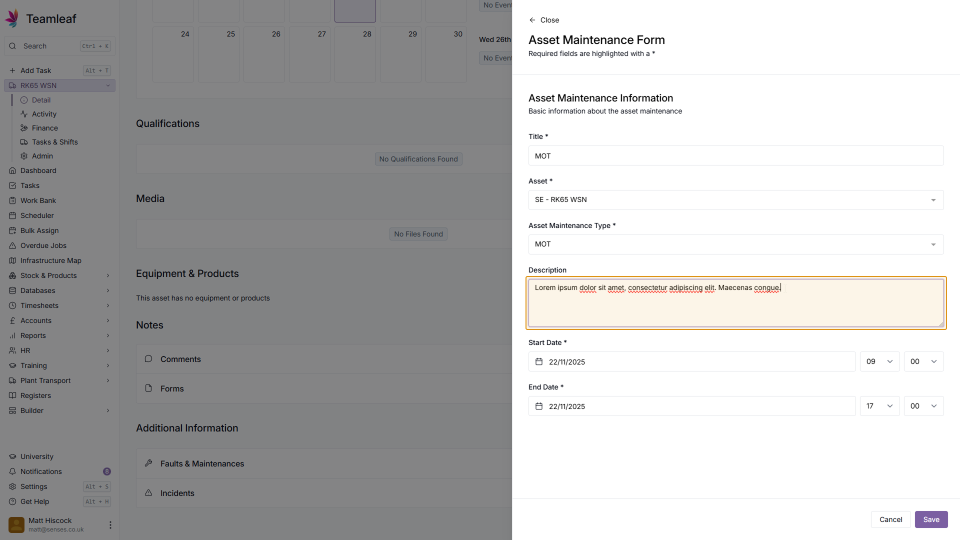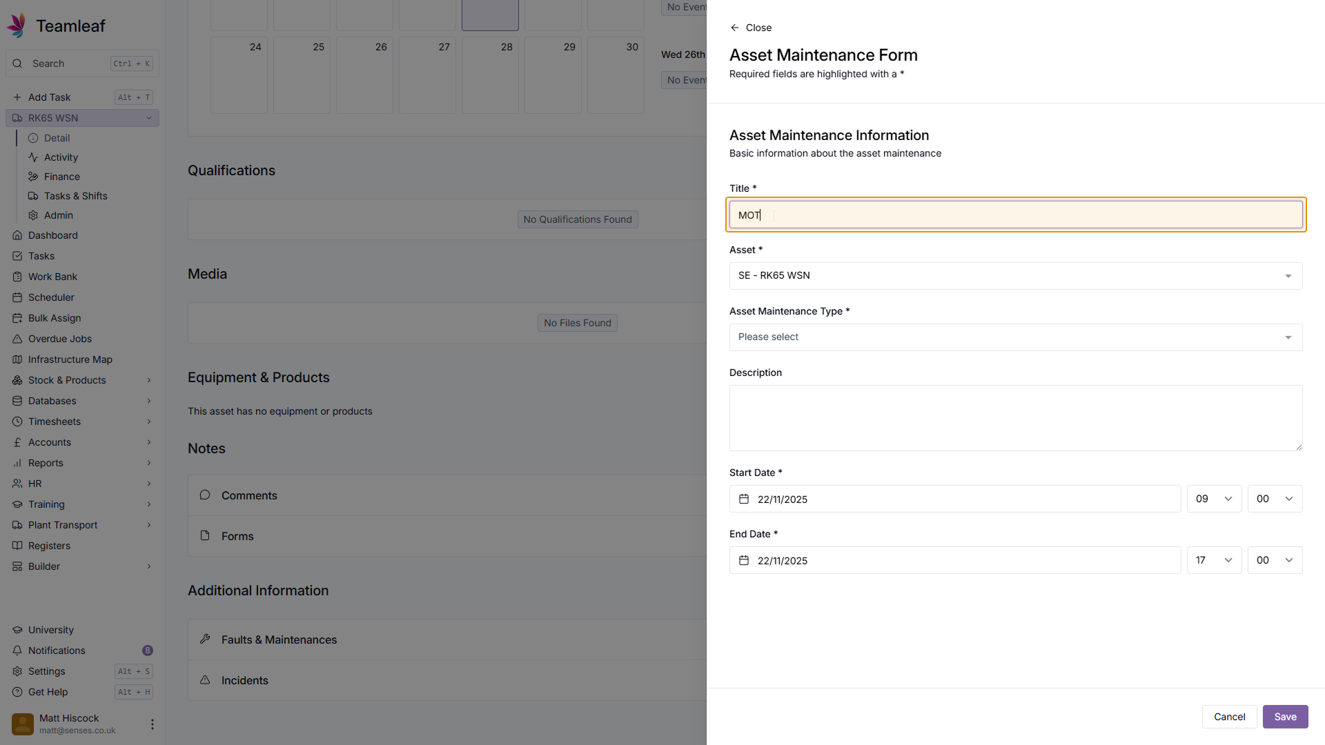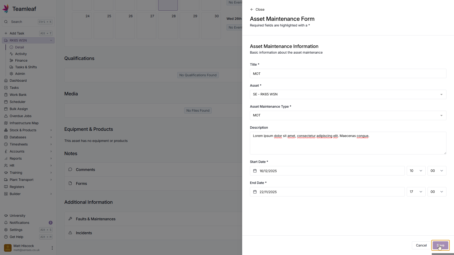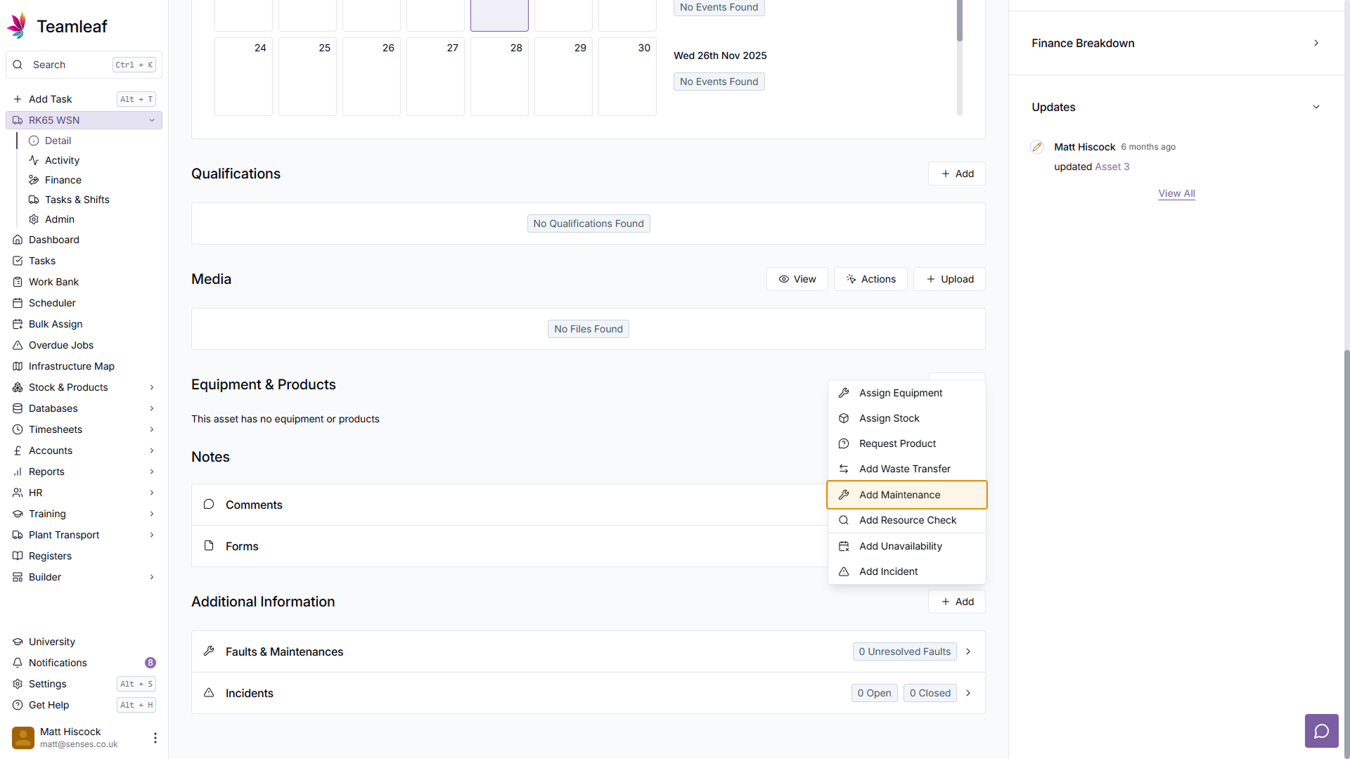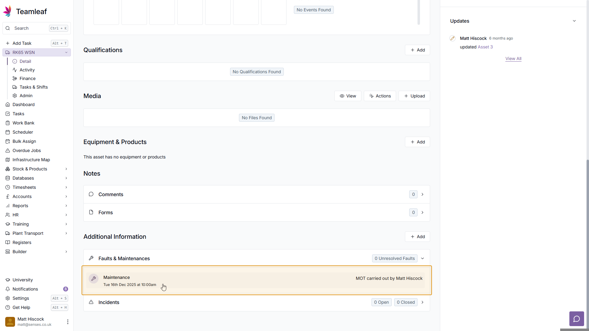 Once you've clicked save, you will now see your new Maintenance under the 'Faults & Maintenances' section on the Asset Page.