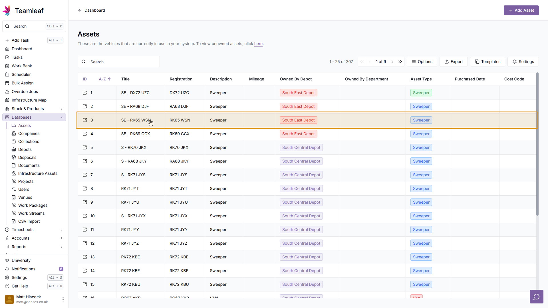 In the Assets list, click the Asset that you'd like to add a maintenance to