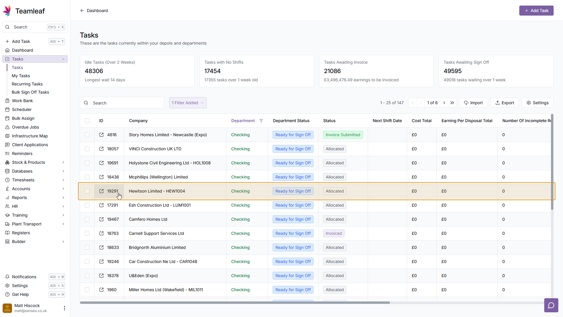 To start, you'll need to go to the Task you wish to sign off. To do this, go to the Task List page