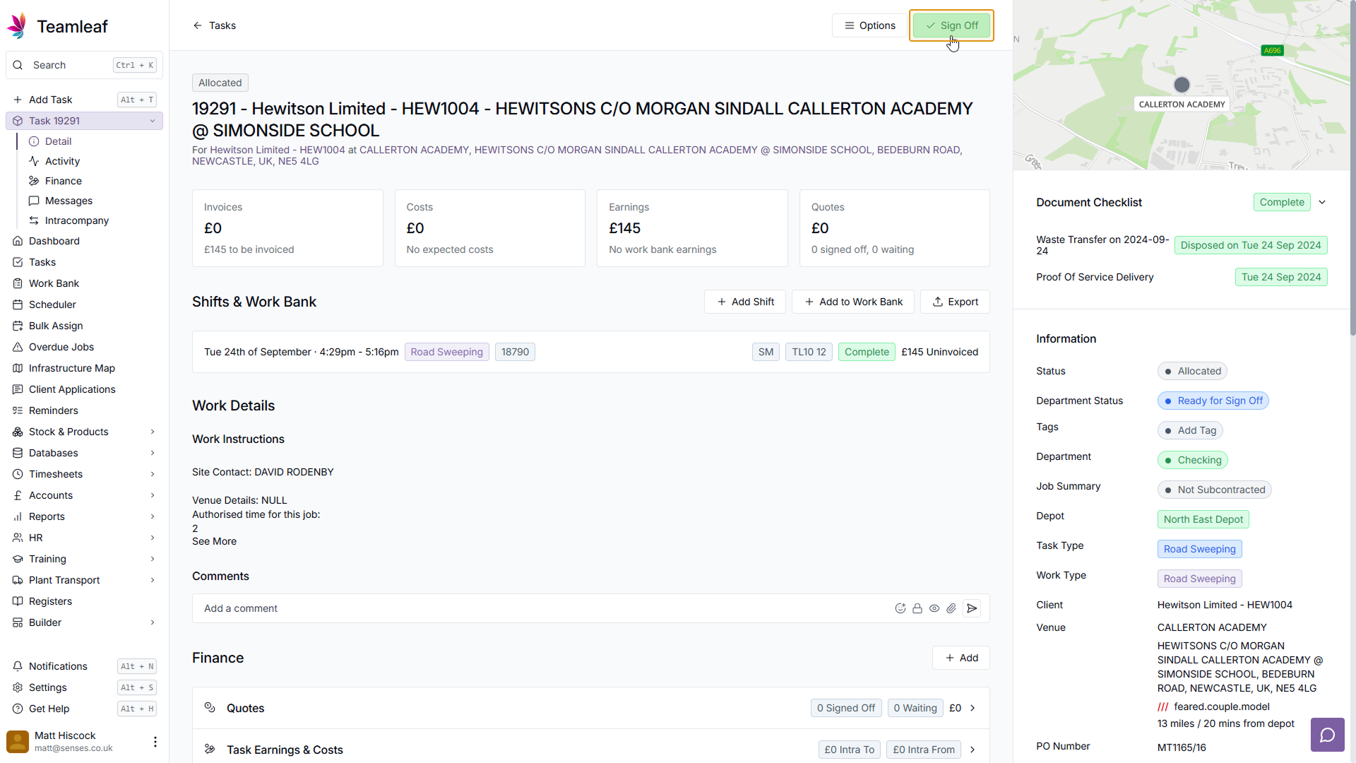 At the top of the page there is a 'Sign Off' button, click this to sign the task off
